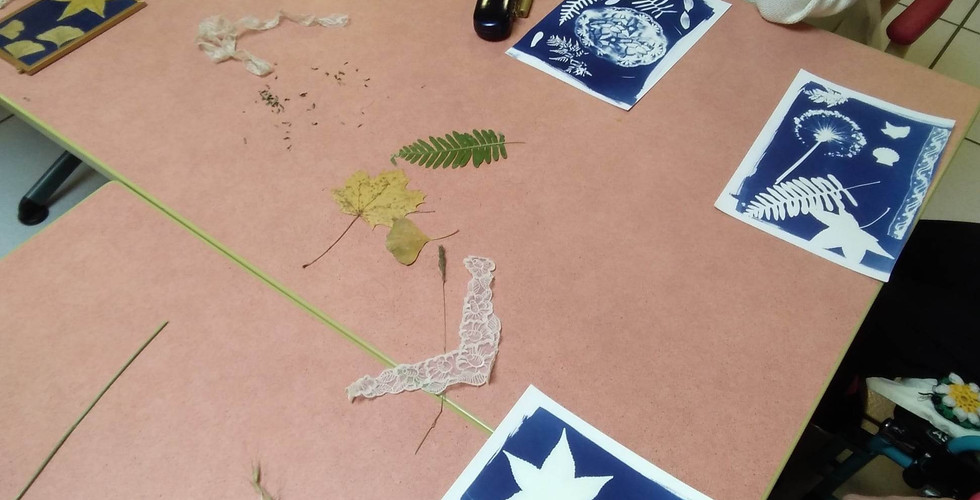 Delphine et Claire ont passé l'après-midi avec les résidents et résidentes de la maison de secours à Bessèges. L'occasion leur faire découvrir le cyanotype (les créations vont décorer les murs de la maison de secours) et d'écouter leurs histoires au fil de l'eau : sécheresse, guinguette, baignades, crues... Marie, Margueritte et les autres nous ont racontés leurs souvenirs, qui viendront enrichir la partie sonore de l'installation de notre exposition.